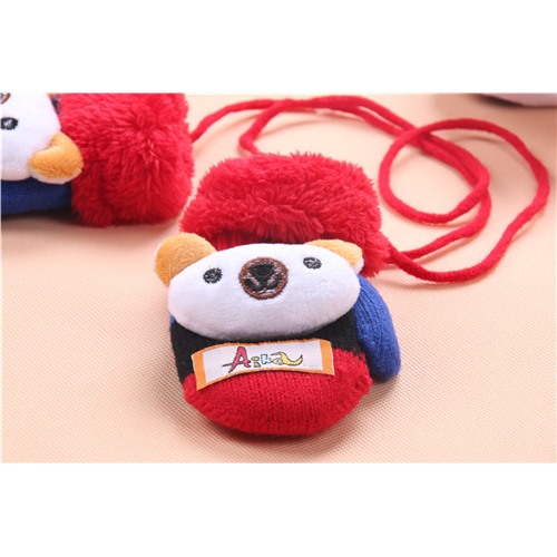 Детские варежки с медвежонком на веревочке, размер на 1-2 года