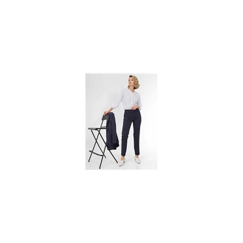 Текстильная блуза с V-образным вырезом горловины, прямого силуэта, с центральной застежкой на пуговицы.