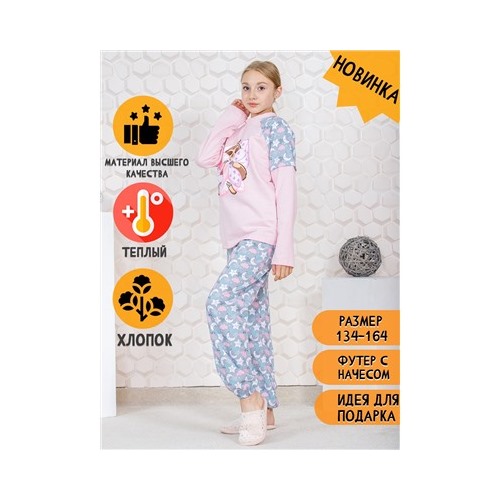 Сезонность: Осень-зима Утепленная пижама из кофты с длинным рукавом и штанишек, выполнены из мягкой качественной хлопковой ткани. Брюки прямого кроя, снизу на резинке. Кофта свободная, вырез горловины О-образный, рукав-реглан. На полочке милый принт с изображением сладко спящего ленивца. Пижама отлично подойдет для ночного сна в любое время года. А качество ткани, принта и пошива пижамы будет радовать своим первоначальным видом несколько сезонов.