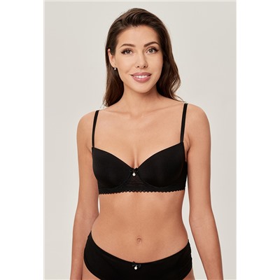Женственный бюстгальтер с формованными чашками на косточках. Выполнен из гладкого, приятного на ощупь эластичного полотна и кружева с геометрическим узором. Спереди аккуратная жемчужная подвеска с бантиком. 2 варианта застежки бретелей: классический и крест-накрест. Боковые корсетные вставки обеспечивают оптимальную посадку. Изысканный и благородный образ. Состав: 88%Polyamide/12%Elastane. Комментарии к товару