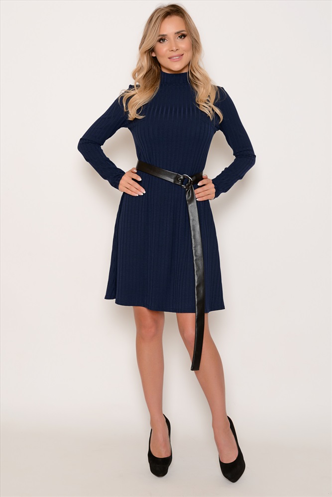 Для размеров 42, 44, 46 длина платья - 91 см; для размера 48 - 92 см; для размера 50 - 93 см; для размера 52 – 94 см. Трикотаж SOFT RIB "лапша" средней ширины. Плательная ткань средней толщины и средней плотности с отличным стрейчевым эффектом (хорошо тянется). Состав: полиэстер 75%, вискоза 20%, спандекс 5%. Цвет: тёмно синий (!), насыщенный, глубокий, классический синий. ВАЖНО! Мы даём подробные описания цветов изделий, потому что мониторы компьютеров, дисплеи планшетов и смартфонов не передают цвета достоверно! Платье-водолазка в летящем трапециевидном силуэте из уютного, приятного к телу трикотажа "лапша". Холода – не повод перестать носить платья. Ткань отлично тянется, поэтому застёжка в модели отсутствует. ВАЖНО! Комментарии к товару