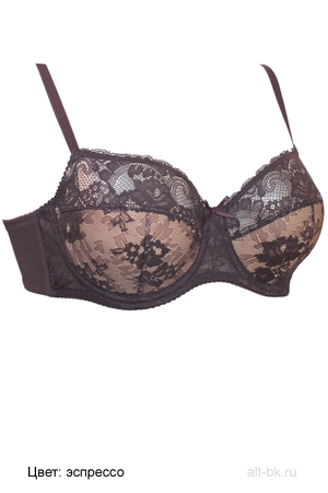 Бюстгальтер «балконет» из неэластичного кружева, неэластичного кружевного и эластичного трикотажного полотна. На каркасах. Нижние детали чашек на дубляже с хлопком. Упругие пластины в боковых деталях стана. Отделка - бантики.
