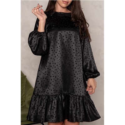Длина артикула измеряется по спинке от основания шеи до низа изделия. Основная ткань: плательно-блузочного ассортимента. Цвет подкладочной ткани: черный. Платье трапециевидного силуэта с широкой оборкой по низу и поясом-завязкой из основной ткани (пояс входит в комплект и стоимость изделия). Платье на подкладке частично: перед, спинка. Стиль: городской, повседневный, романтичный. Длина изделия: в расправленном виде платье до линии колена, при использовании пояса (ремня), становится как умеренное Мини, немного выше линии колена. Горловина: углублена и расширена, вырез лодочка, обработана узкой притачной обтачкой со сгибом из основной ткани. Пройма: углублена и расширена. Рукав: реглан, одношовный, длинный, расширяется к низу и собирается на эластичную тесьму. Перед: разрезной. По линии низа притачная широкая оборка со сборкой. Спинка: разрезная, в среднем шве от горловины вниз разрез с застёжкой на навесную петлю и отделочную пуговицу. По линии низа притачная широкая оборка со сборкой. Комментарии к товару