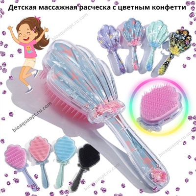 35%Детская массажная расческа с цветным конфетти, 1 шт.