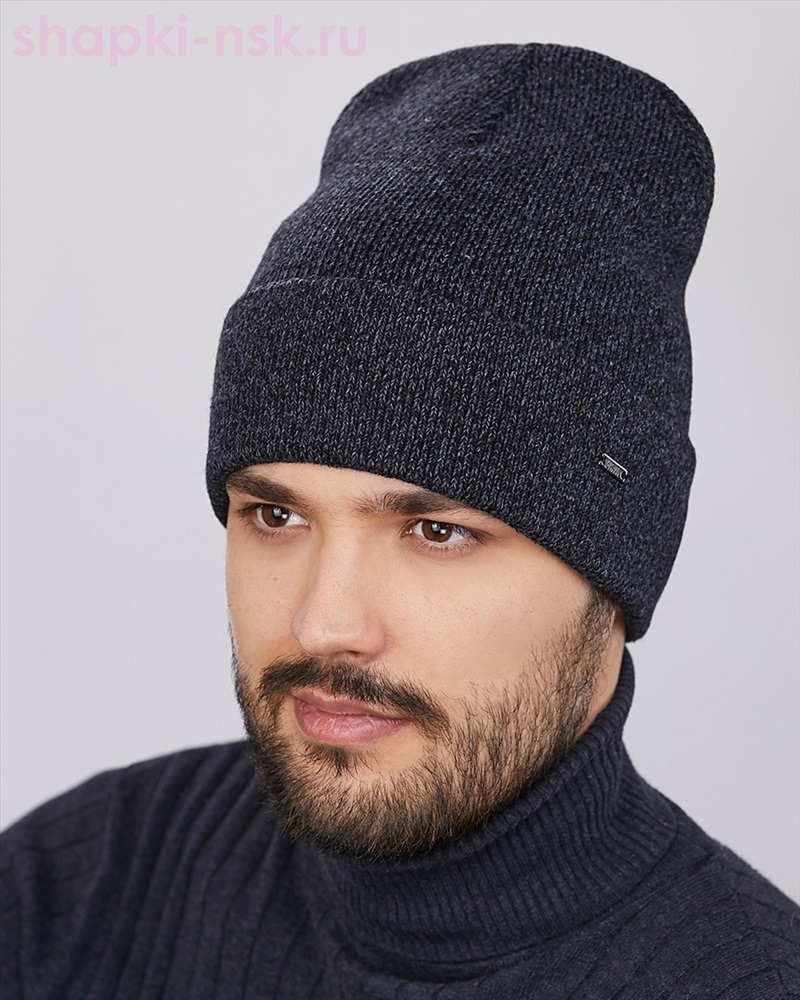 Стильная мужская шапка-колпак из меланжевой пряжи с отворотом-резинкой, который обеспечивает более плотное прилегание шапки к голове. Отличный повседневный вариант.