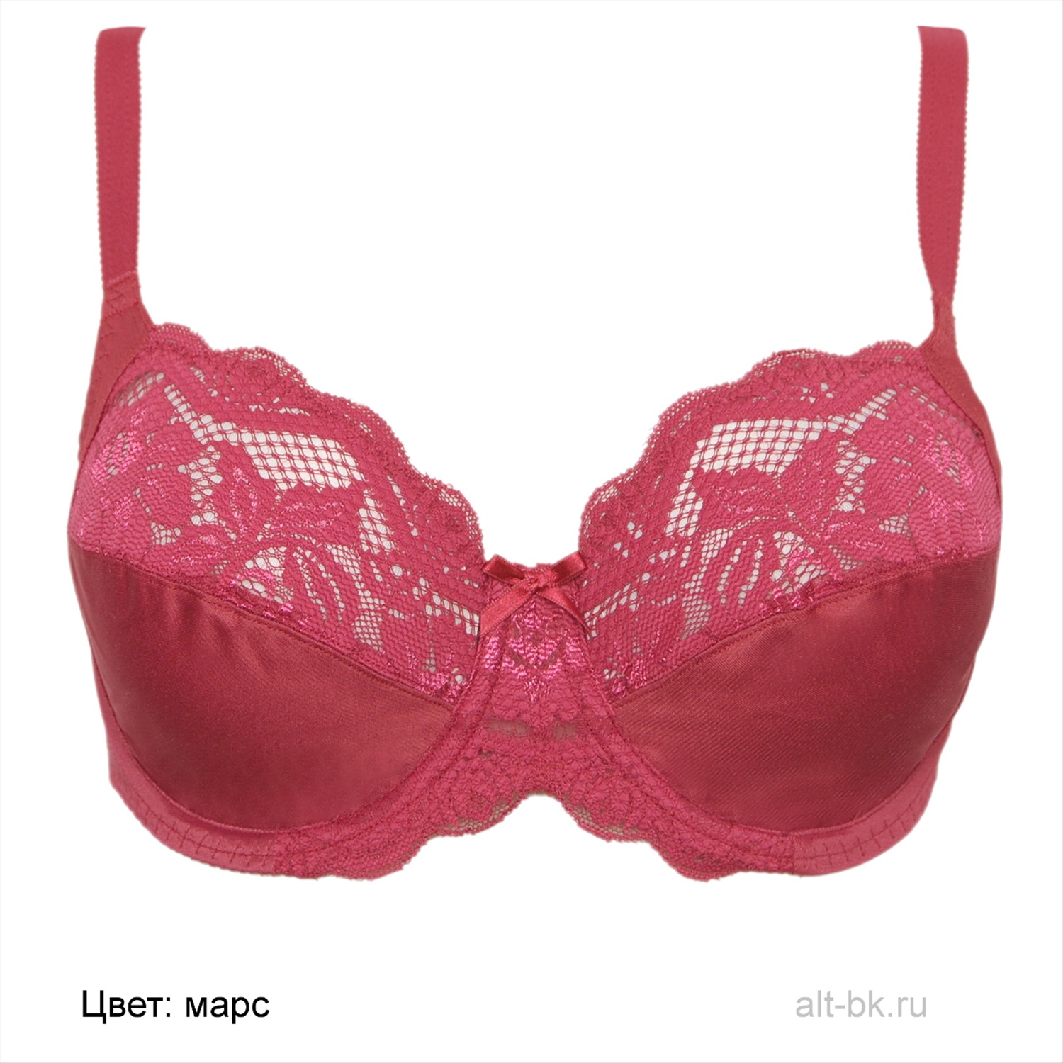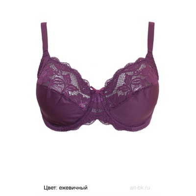 Бюстгальтер из эластичного полотна и неэластичного трикотажного полотна. Чашки мягкие с боковой корректирующей деталью, на каркасах. Верхняя деталь чашки и центральная деталь бюстгальтера выполнены из эластичного кружева. Отделка - бантик.