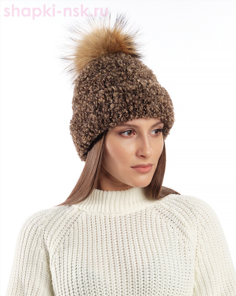 Состав: 30% мохер 70% акрил Помпон: енот натуральный Отворот: шапка с отворотом Подклад: полный флис Толщина: шапка толстая Комментарии к товару