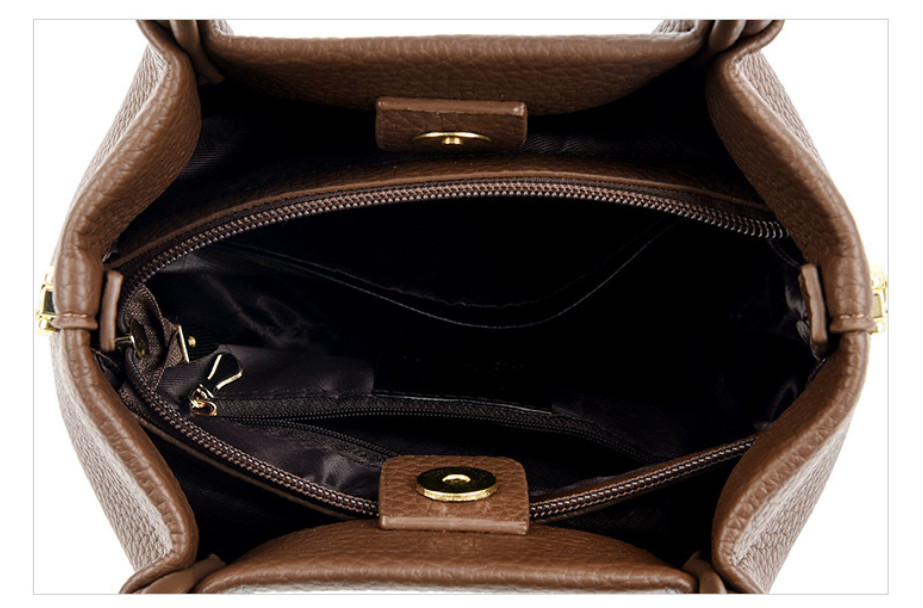 Внутри: 3 независимых отделения, среднее из которых на молнии, крайние отделения закрываются на кнопку-магнит.