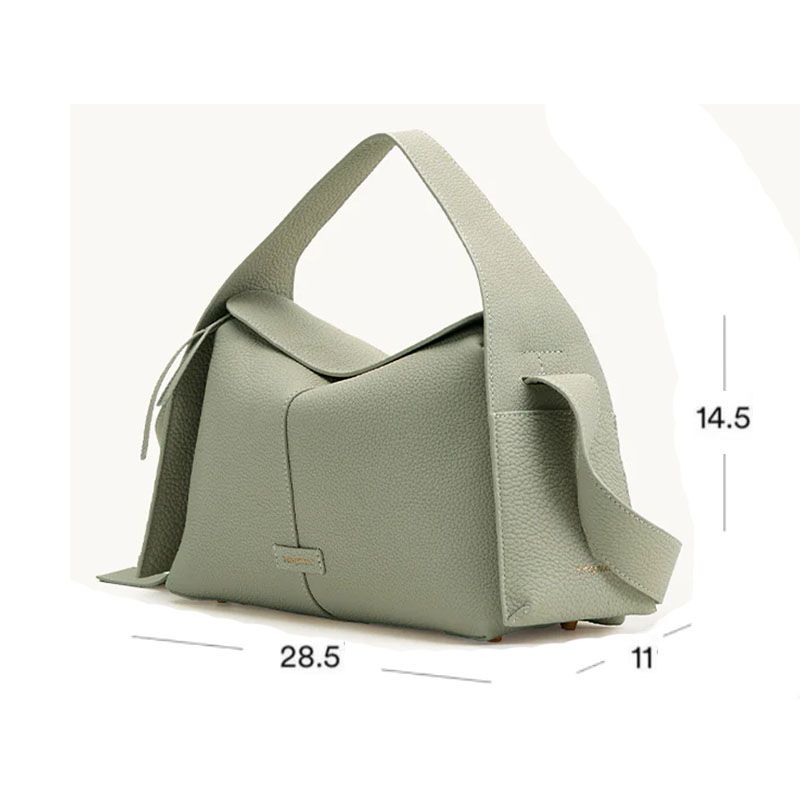 Ручка средней длины и съёмный регулируемый ремень позволяют носить сумку в руке, на плече или через плечо. Минималистичная золотая надпись бренда на боку добавляет утончённости, не перегружая образ.