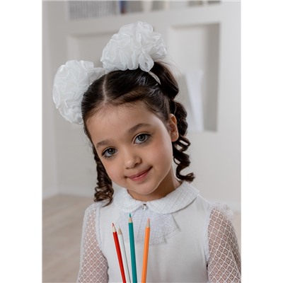 Изящный объёмный бант с люрексной ниткой на резинке из органзы. Диаметр 12 см.