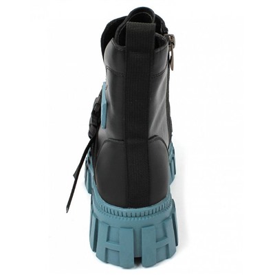 Модель выполнена из натуральной кожи черного цвета и удобно фиксируется на шнуровку и боковую молнию. Подкладка и стелька из утепленного баечного текстиля подарят комфорт и тепло детским ножкам в прохладное время года.