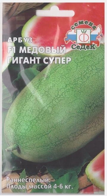 Раннеспелый (от всходов до созревания плодов 65-80 дней) сорт для открытого и защищенного грунта. Растение среднеплетистое, длиной 3-5 м. Крупноплодный, удлинённо-овальной формы, длиной 50-60 см, массой до 12-15 кг. Кора светло-зеленая с тёмно-зелёными прожилками (с мраморным рисунком), насыщенно-розово-красной плотной, сочной, сладкой мякотью. Урожайность с растения 25-30 кг. Ценность сорта: устойчивость к фузариозу и антракнозу, транспортабельность, при хранении сохраняется плотность мякоти. Назначение универсальное. Фасовка 1г Комментарии к товару