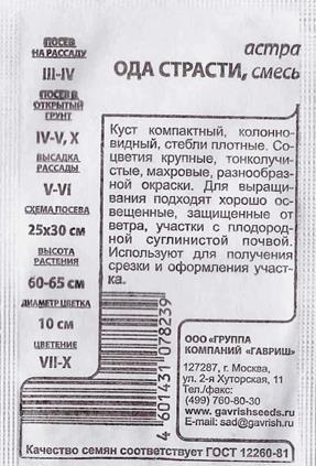 Нарядная смесь с разнообразной формой соцветий и окраской для самых ярких цветников и подарочных букетов. Растения высотой 60-65 см. Для выращивания подходят хорошо освещенные участки с плодородной суглинистой или супесчаной почвой. Астры обладают высокой холодостойкостью – хорошо переносят заморозки до -3-4°C. Выращивают чаще всего рассадным способом. Семена высевают в марте-апреле, пикируют с развитием первой пары настоящих листочков по схеме 5х5 см, в открытый грунт рассаду высаживают с середины мая до начала июня. Возможен подзимний посев астр: в конце октября на глубину 5-8 см. Сверху посевы мульчируют торфом или опилками на высоту 3-5 см. Весной в конце марта-начале апреля посевы раскрывают. Появившиеся в конце апреля всходы будут закаленными, а выросшие растения сильными, устойчивыми к заморозкам и обильно цвести. Используются для получения срезки и оформления участка. Фасовка 0,3г Комментарии к товару
