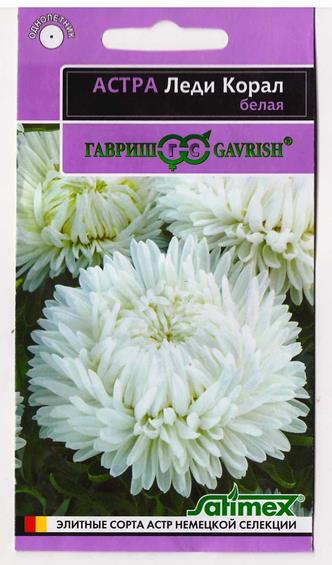 Роскошная серия высоких астр (60-70 см) с пирамидальной формой куста. Многочисленные плотно-махровые розовидные соцветия диаметром 10-12 см на прочных цветоносах долго сохраняют свежесть в цветниках и букетах. Язычковые цветки белоснежные. Для выращивания подходят хорошо освещенные участки с плодородной суглинистой или супесчаной почвой. Выращивают чаще всего рассадным способом. Семена высевают в марте-апреле, пикируют с развитием первой пары настоящих листочков по схеме 5х5 см, в открытый грунт рассаду высаживают с середины мая до начала июня. Возможен посев семян в открытый грунт ранней весной или под зиму с последующим мульчированием торфом или опилками. Сорта серии Леди Корал имеют высокую устойчивость к фузариозу и благодаря большому количеству соцветий на одном растении долго сохраняют декоративность в любых погодных условиях. Лучшая серия для профессионального выращивания на срезку. Фасовка 0,05г Комментарии к товару