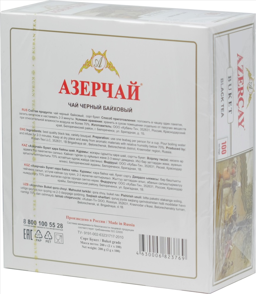 Наличие: >100 Чай черный байховый высшего сорта. Стандарт Orange Pekoe A (OPA).Букет — смесь крупнолистовых, завивающихся чайных листьев. Выращен особым способом. Перерабатывается из свежих листьев молодого крупнолистового чая. Обладает нежным освежающим вкусом с ярким золотисто-медным цветом.Произведено в России. Представлен в удобном пакетированном формате. Комментарии к товару