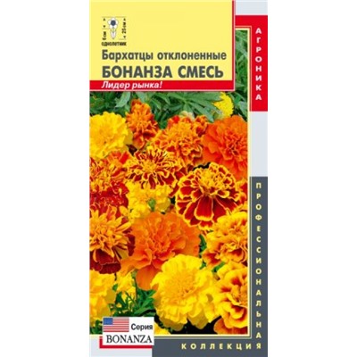Бархатцы серии Бонанза уже много лет являются эталоном среди производственных серий отклоненных бархатцев, ведь они сочетают в себе самое раннее цветение, самую идеальную выравненность по габитусу и самые крупные махровые цветки, и все это вместе с неприхотливостью в выращивании дает им право называться лидерами рынка! Растение образует очень компактные кустики высотой 25-30см и диаметром 20см. Крупные махровые цветки насыщенных расцветок могут являться основой любого цветника или клумбы. Предпочитает солнечные места и цветет все лето, несмотря на погодные условия. Отлично подойдет для выращивания в кассетах для дальнейшей реализации. Фасовка 10шт Комментарии к товару