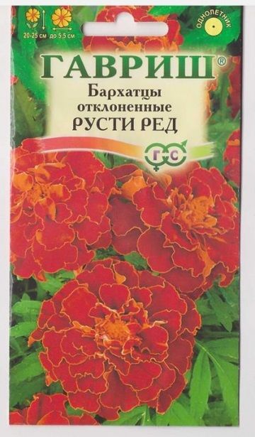 Однолетнее растение семейства Сложноцветные. Стебли прямостоячие, 20-25 см высотой, сильно ветвистые от основания, боковые побеги отклоненные. Соцветия — корзинки 5-5,5 см в диаметре. В открытый грунт можно высевать в конце мая — начале июня. Всходы появляются на 5-10 день. Почву желательно накрыть нетканым материалом (акрил, лутрасил). В этом случае сеять можно на неделю-полторы раньше обычных сроков и тем самым ускорить цветение. На рассаду сеют в начале апреля. Цветение начнется в июне. Бархатцы, высаженные рядом с огородными культурами уменьшают их поражение грибными заболеваниями, особенно фузариозом, защищают от некоторых видов нематод. Бархатцы используют во всех видах цветников. Они хорошо растут в горшках, вазонах, балконных ящиках, в сочетании с примулами и цинерариями. Осенью цветущие растения можно перенести в комнату, где они прекрасно растут в течение всей зимы, а весной, высаженные в открытый грунт, образуют большой цветущий куст. Фасовка 0,3г Комментарии к товару