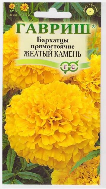 Однолетнее растение семейства Сложноцветные. Высотой до 80 см, сильно ветвистое от основания, боковые побеги отклоненные. Соцветия — корзинки до 15 см в диаметре, густомахровые, шаровидные, золотисто-желтой окраски. В открытый грунт можно высевать в конце мая — начале июня. Всходы появляются на 5-10 день. Почву желательно накрыть нетканым материалом (акрил, лутрасил). В этом случае сеять можно на неделю-полторы раньше обычных сроков и тем самым ускорить цветение. На рассаду сеют в конце марта – начале апреля. Цветение начнется в июне. Бархатцы, высаженные рядом с огородными культурами уменьшают их поражение грибными заболеваниями, особенно фузариозом, защищают от некоторых видов нематод. Бархатцы используют во всех видах цветников. Они хорошо растут в горшках, вазонах, балконных ящиках, в сочетании с примулами и цинерариями. Осенью цветущие растения можно перенести в комнату, где они прекрасно растут в течение всей зимы, а весной, высаженные в открытый грунт, образуют большой цветущий куст.