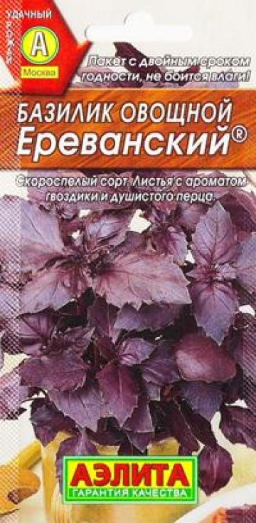 Этот скороспелый сорт с богатым содержанием эфирных масел станет изысканной приправой для блюд. Имеет приятный запах душистого перца и чая, в свежем виде является ценным источником каротина и рутина. Благодаря своей неприхотливости и удивительным сине-фиолетовым листьям очень декоративен. Растение раскидистое, 40-60 см, великолепно отрастает после срезки. Масса растения достигает 300 г. Свежие и высушенные листья хороши в качестве приправы к рыбным и мясным блюдам, соусам, салатам. Прекрасно сохраняет аромат при заморозке. Листья можно использовать при консервировании овощей и для ароматизации кондитерских изделий. Фасовка 0,3г Комментарии к товару