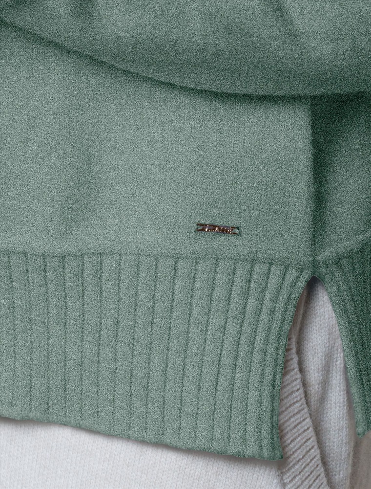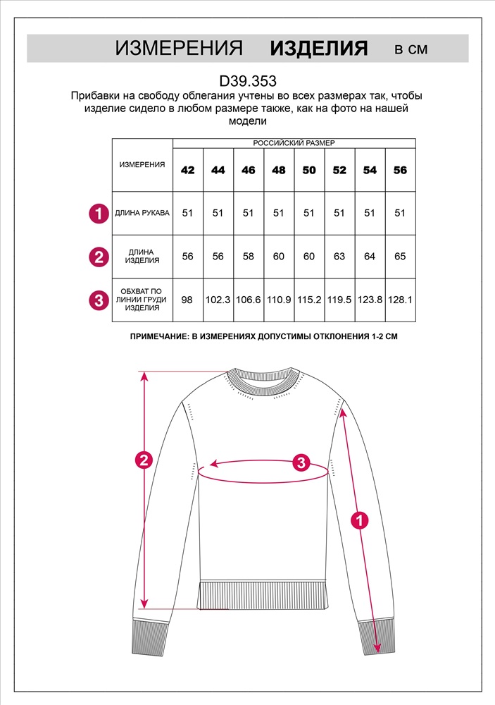 Плотность: 7 GG Размер товара на первом фото: 42 Укороченный джемпер светло-оливкового цвета с круглым вырезом связан из высококачественной пряжи с кашемиром — идеальное сочетание мягкости и практичности. Пряжа с кашемиром придаёт ему бархатистую нежность и тонкую структуру, каждое прикосновение с которой, напоминает о тепле и уюте в прохладные дни. Благодаря нежной текстуре материала этот вариант отлично подходит даже для чувствительной кожи, не вызывая раздражения и дискомфорта в течение дня. Сдержанный, элегантный силуэт джемпера подчёркивает вкуc обладательницы, а филигранная отделка ворота — внимание к деталям. Универсальный оттенок и изящная мягкость делают его идеальным выбором в любой ситуации Широкие манжеты и нижний край добавляют аккуратности, а продуманная посадка и небольшие разрезы по бокам делают повседневный джемпер удобным для многослойных образов — от офисного комплекта до расслабленного уикенда. Свободный крой джемпера идеально подходит для женщин, которые ценят удобство и стиль одновременно, а так же идеальноподходит на большие размеры. Благодаря качественной пряже свитер сохраняет форму и внешний вид даже после многократных носок. Практичный фасон идеально подходит для работы в офисе или встреч с друзьями. Благодаря классическому крою джемпер гармонично сочетается практически с любыми элементами гардероба, помогая всегда выглядеть актуально. Сочетается в костюме с брюками D38.013, D38.012 и юбкой D36.016 Комментарии к товару