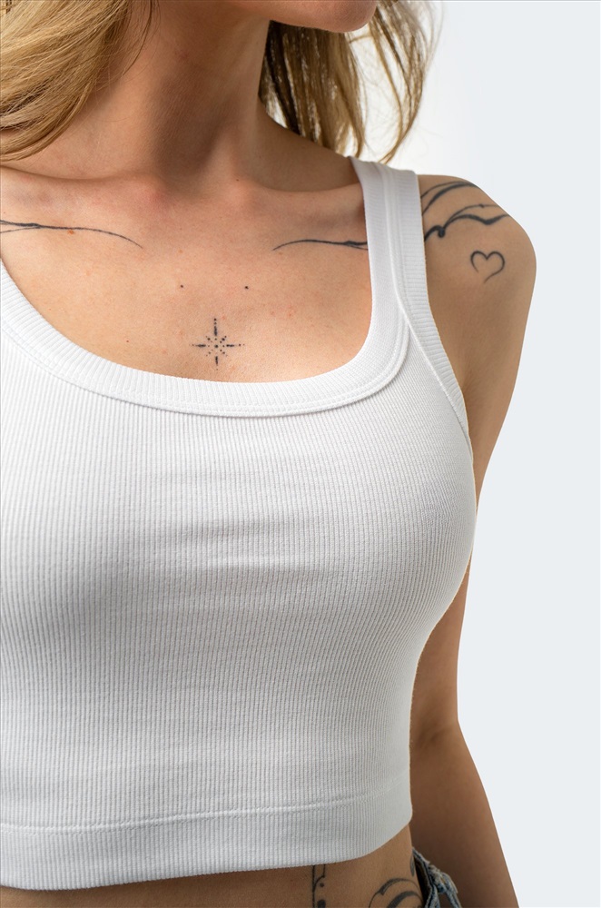 Подчеркни активный образ жизни! Однотонный женский топ в рубчик – это стильный базовый элемент многослойных образов. Кроп топ белого цвета выполнен из качественного хлопкового трикотажа.