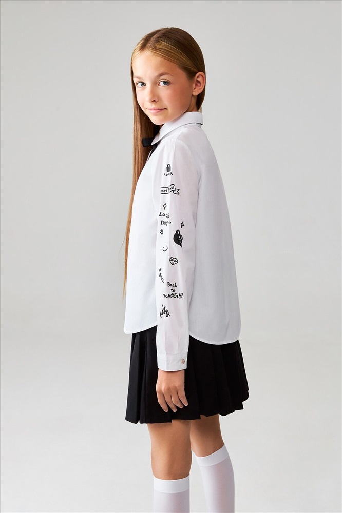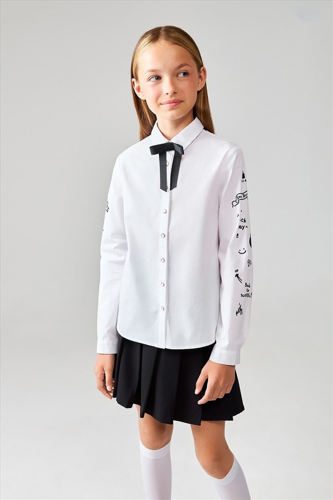 ID товара: 1047909 Состав: 100% Хлопок Сезон: Демисезон Длина: Средняя Фасон: Прямой Рукав: длинные Вид застежки: Пуговицы Вырез горловины: Отложной воротничок Рисунок: Фантазийный Декоративные элементы: Принт Основная ткань: Хлопок Стиль: классический Страна бренда: Россия Страна производства: Китай Блузка детская для девочек Tartlet2 белый Комментарии к товару
