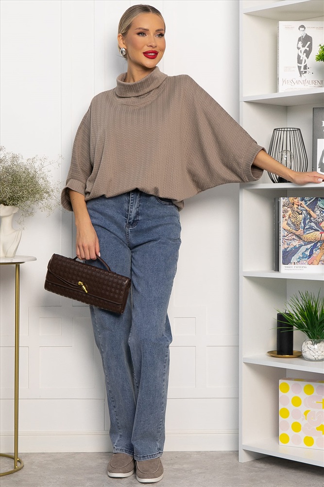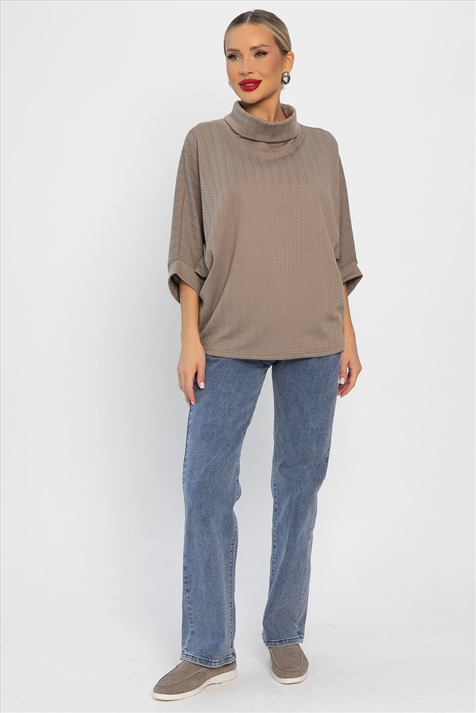 Самые непредсказуемые ансамбли и живописные образы позволяет создать джемпер, вписывающийся в самые разнообразные стили. Удобное, практичное, функциональное изделие позволит сочетать его с разнообразным низом, а мягкий трикотаж подарит комфорт в прохладную погоду. Джемпер имеет акцентную горловину, а рукава скроены по типу «летучая мышь». Свободный крой позволит скрыть недостатки фигуры.