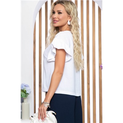 Артикул:Б4289. Ткань:«Сингапур» жатка. Состав:65% п/э, 30% вискоза, 5% эластан. Цвет:белый. Вид застежки:без застёжки. Силуэт:прямой. Карманы:отсутствуют. Тип горловины:округлый. Длина изделия по спинке:44-46/ 53 см, 52-56/ 54 см. Рост модели:175 см. Блуза прямого кроя в классическом белом цвете. Акцентной деталью являются летящиерукава-воланы, которые умело добавят образу непринуждённой лёгкости. Данная модель комбинируется практически с любым низом, будь то брюки, юбка или летние шорты. Уход за изделием: бережная стирка до 30 градусов, нельзя отбеливать, деликатный отжим, гладить при t не более 110 С, гладить с изнанки. *Допуск отклонения длины при массовом производстве 1-3 см является нормой.