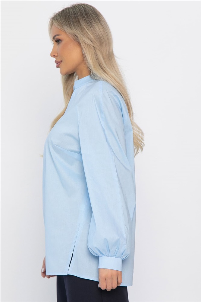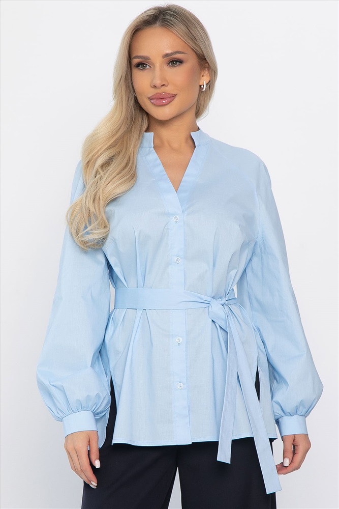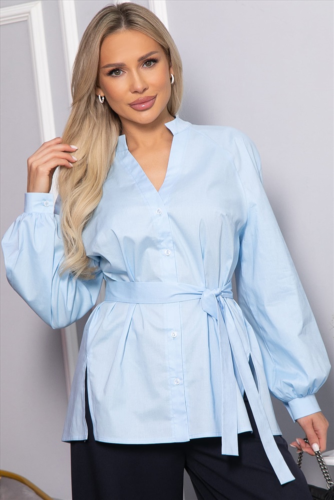 Голубая классическая блуза с поясом — элегантный предмет гардероба. Изготовленная из качественной ткани, она отличается аккуратным кроем и универсальным стилем. Пояс подчеркивает талию, добавляя образу женственности и изящности. Идеально подходит для офисных луков, деловых встреч или повседневных образов. Простая и в то же время стильная, эта блуза станет незаменимой частью вашего гардероба.