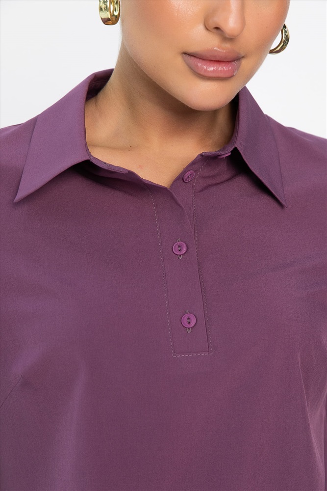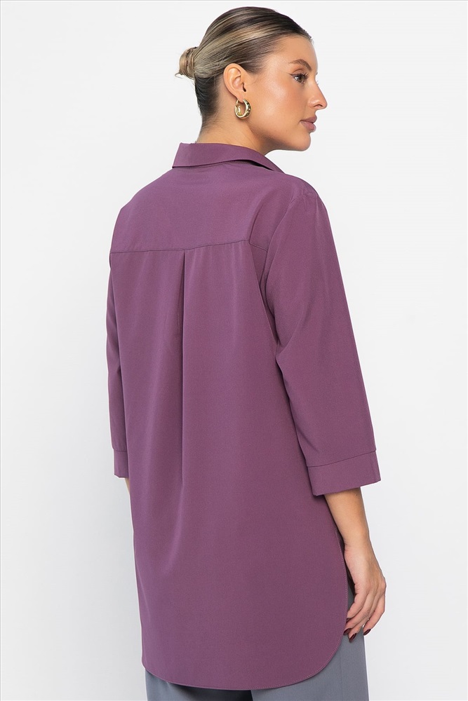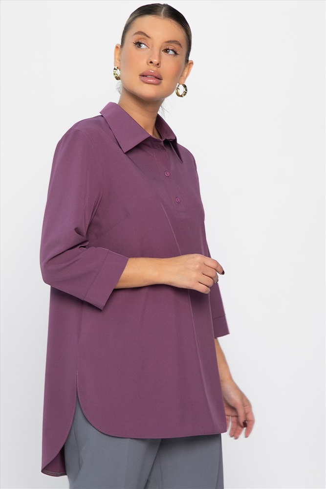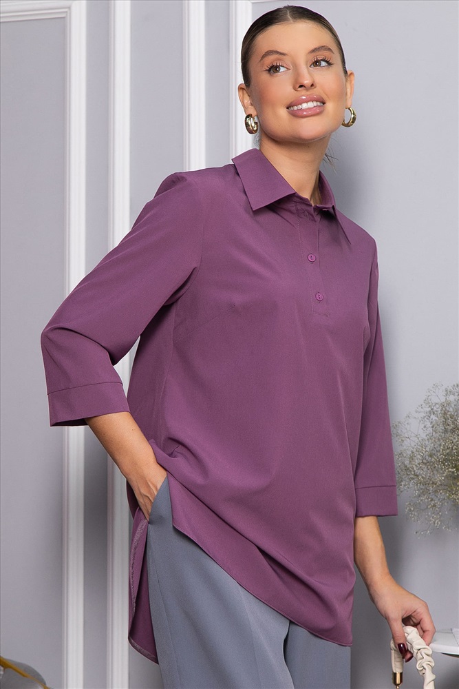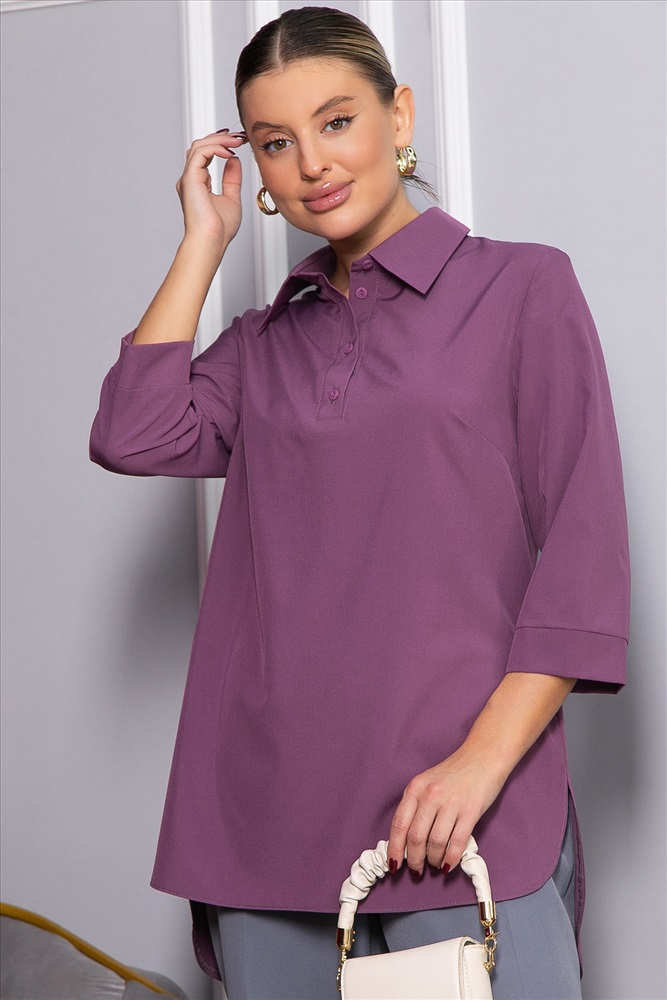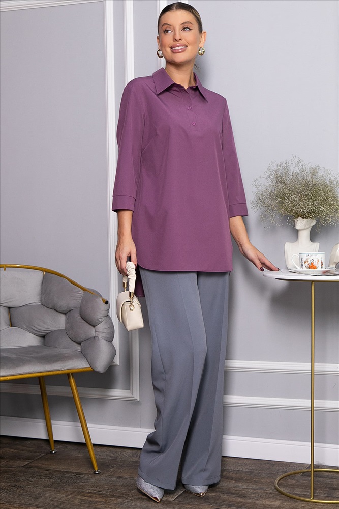 Женская блузка в пыльно-розовом цвете — это невероятно стильная и модная модель, которая сделает ваш гардероб еще более разнообразным. Свободный крой обеспечивает комфорт, а классический рубашечный воротник и застежка на четыре пуговицы придают образу элегантность. По спинке расположена кокетка, а низ рукавов украшен манжетами. Закругленные бока по низу добавляют модели изящества и современного стиля. Идеальный выбор для создания как повседневных, так и более официальных образов.