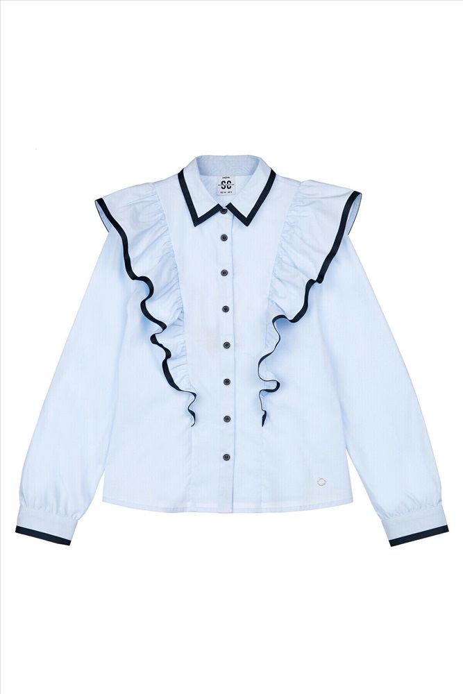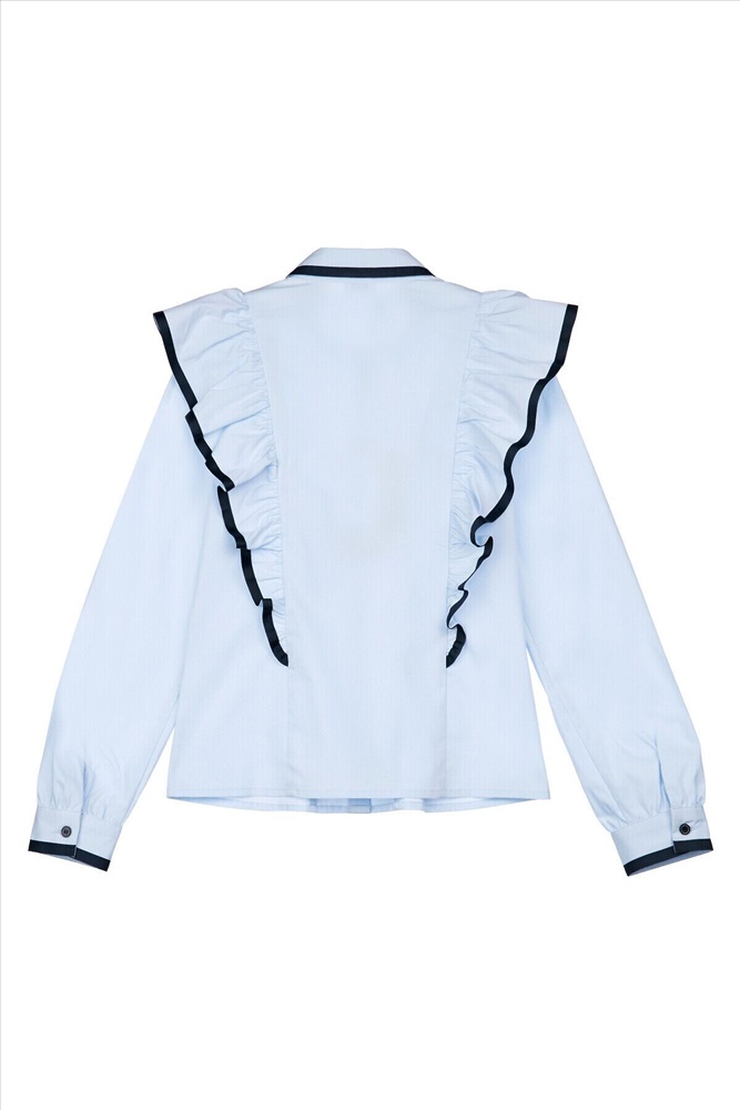 ID товара: 891139 Сезон: Весна/Лето Фасон: Прямой Рукав: Длинный Вид застежки: Пуговицы Вырез горловины: Отложной воротник Декоративные элементы: Рюши Страна бренда: Германия Страна производства: Китай Блузка текстильная. Высокое содержание хлопка. Застежка на пуговицы. Комментарии к товару