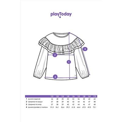 Производитель: PLAYTODAY ID товара: 998859 Сезон: Весна/Лето Длина: Средняя Фасон: Прямой Рукав: длинные Вырез горловины: Округлый Декоративные элементы: Волан Стиль: повседневный Страна бренда: Германия Страна производства: Россия