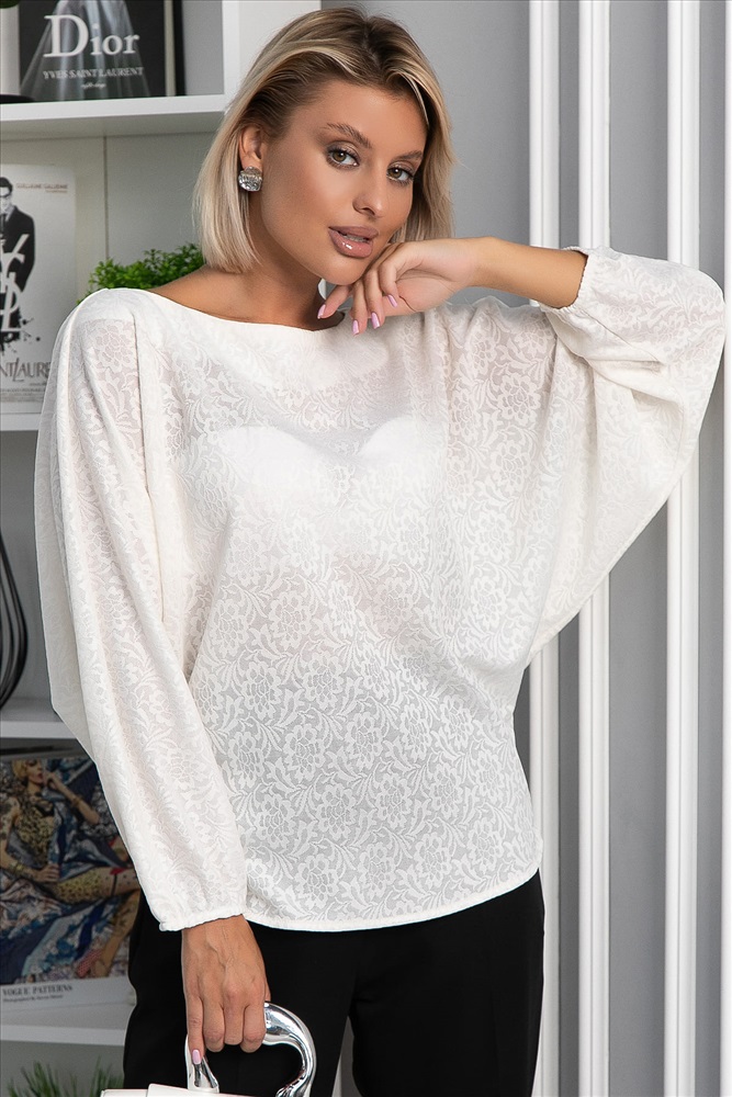Изящная блузка с принтом в тон изделия — универсальный вариант для создания как повседневных, так и деловых образов. Модель с рукавами «летучая мышь» и вырезом горловины в форме лодочки. Блузка облегает по бёдра, подчёркивая силуэт, а рукава по низу на резинке. Эта блузка станет отличным дополнением к юбкам или брюкам, позволяя создавать стильные и уверенные образы!