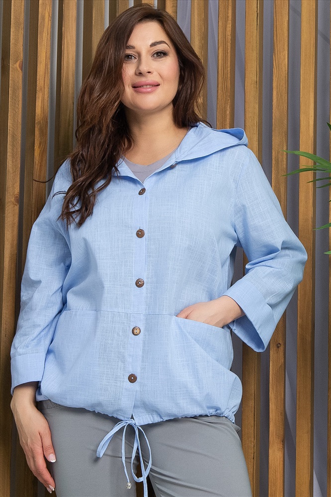 Блузка с капюшоном — это прекрасный элемент летнего гардероба, который идеально подходит для прогулок и отдыха. Свободный крой обеспечивает комфорт. Втачные рукава заканчиваются манжетами, что придаёт модели аккуратный вид. Застёжка на пуговицах спереди добавляет практичности, а шнурок внизу позволяет регулировать силуэт и подчеркнуть фигуру.
