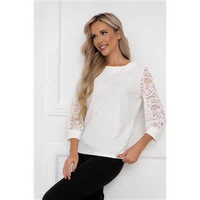 Наши предложения: Новинка Белая трикотажная блузка с кружевными рукавами сочетает в себе комфорт трикотажа и изысканность кружева, что делает её идеальным выбором как для повседневной носки, так и для особых случаев. Кружевные рукава добавляют романтичности и утонченности образу, делая его более выразительным и привлекательным.
