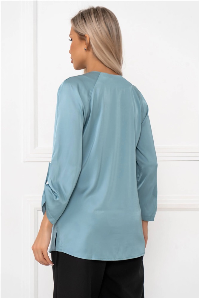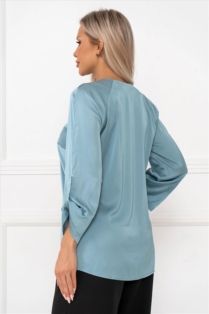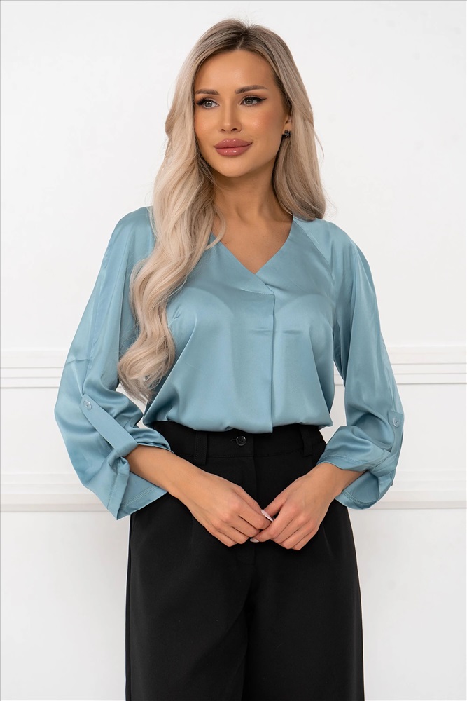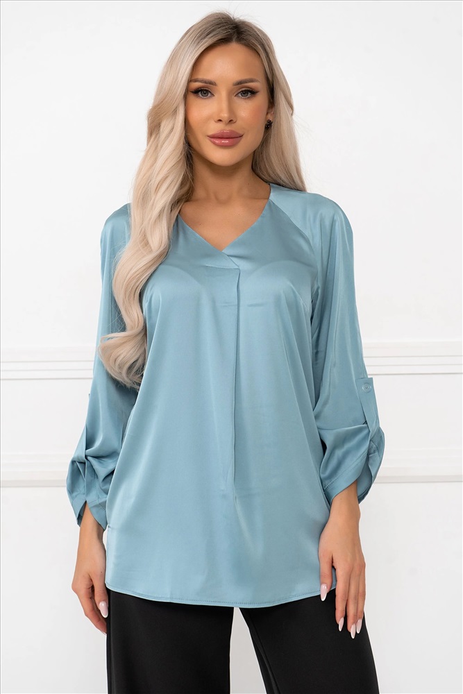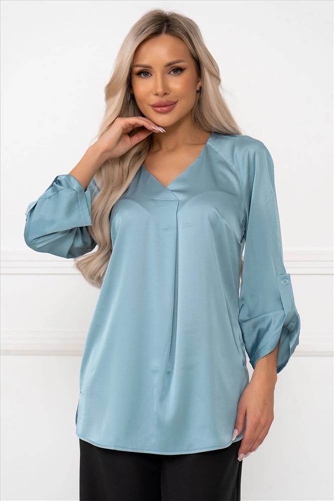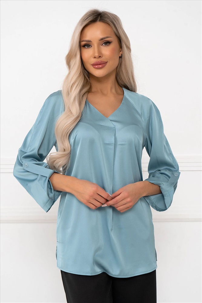 Состав, %: 98% полиэстер 2% эластан Вес: 0 ТипНоменклатуры: Товар Рост, см: 170 Назначение: офис/повседневная носка ВидНоменклатуры: кардиганы,жакеты,блузы Цвет: Серо/голубой ОписаниеФайла: import_files/b5/b5a1c0b0-c658-11ef-815e-6032b106f8ea_d0ea3bac-ce22-11ef-815e-6032b106f8ea.jpeg#9 Блузка с V-образным вырезом привлекает внимание своей элегантностью и женственностью. Рукав выполнен в стиле "спущенного плеча", создавая легкий и воздушный силуэт. Длина рукава составляет 3/4, а его край аккуратно собран на пуговицу, придавая изделию утонченности и завершенности. Такая блузка станет идеальным выбором для создания как деловых, так и повседневных образов, добавляя нотку шарма и стиля в любой лук. Комментарии к товару