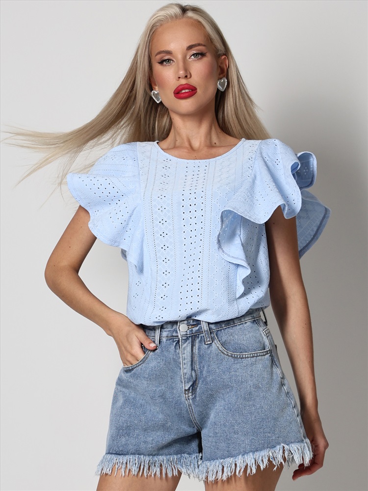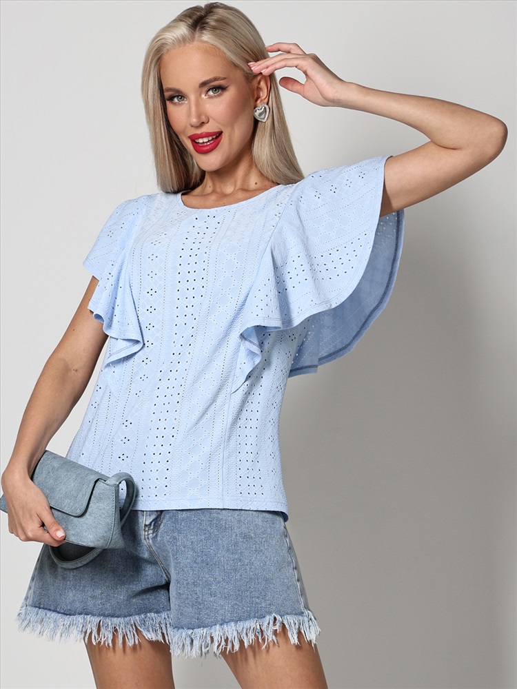 Декоративные элементы: Волан Вид застёжки: Без застежки Вырез горловины: Округлый Длина изделия по спинке: 58 Назначение: Повседневная Тип рукава: Без рукавов Уход за вещами: Бережная стирка при 30 градусах Фактура материала: Трикотажный Состав: 100% полиэстер Тип ткани: Трикотаж Цвет: Голубой Романтичная блузка выполнена из трикотажной ткани, которая обеспечивает легкость, комфорт и эластичность при носке. Модель подходит для летнего сезона благодаря воздушному дизайну и воланам вместо рукавов, что добавляет образу женственности и изящества. Блузка универсальна и может быть использована как для повседневной носки, так и для офисного стиля при сочетании с подходящими элементами гардероба. Изделие доступно в больших размерах, что делает его подходящим для разных типов фигур. Уход за блузкой прост: бережная стирка при температуре 30 градусов сохраняет её форму и качество ткани. Лаконичный и романтичный дизайн делает эту блузку стильным дополнением к летнему гардеробу. Длина: 44 размер - 58 см 46 размер - 58 см 48 размер - 59 см 50 размер - 59 см 52 размер - 60 см 54 размер - 60 см 56 размер - 61 см Рост модели на фотографии 170 см. Параметры модели: 88 х 63 х 96 см. Бережная стирка при 30 градусах Цвет изделия на фотографии может отличаться от фактического товара, что связано с искажением цветопередачи монитором, настройками фотоаппаратуры и прочими факторами Пропорции