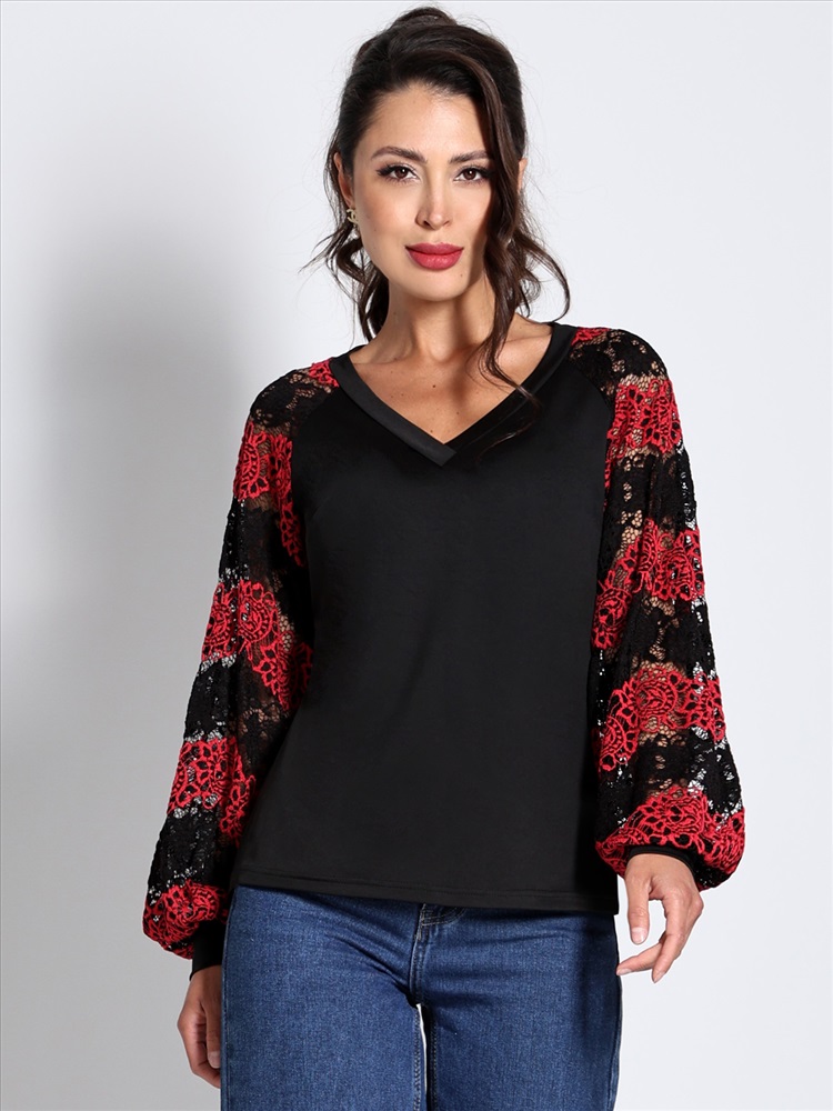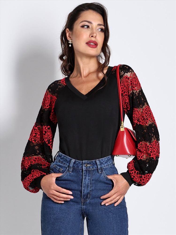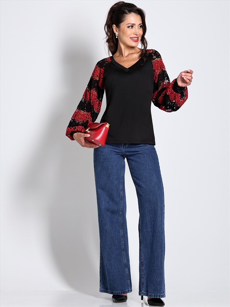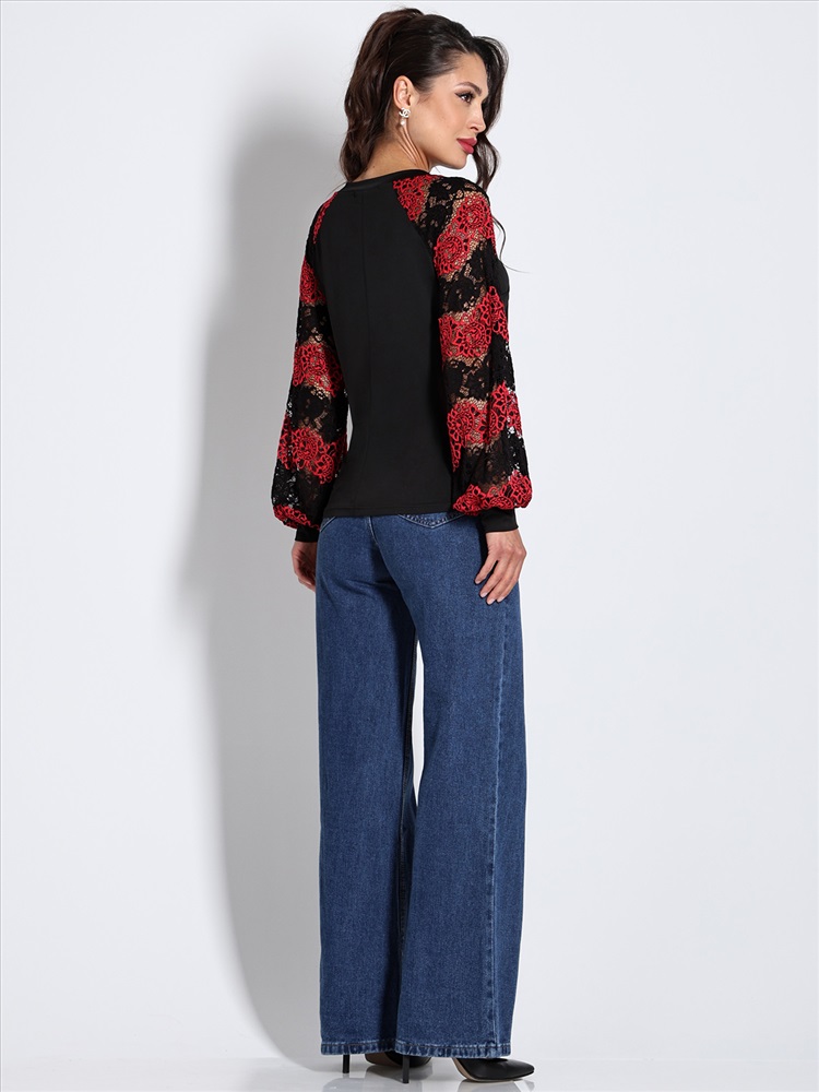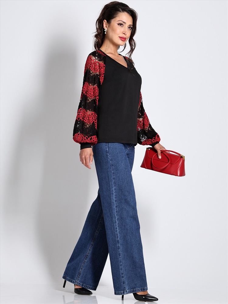 Декоративные элементы: Кружево Вид застёжки: Без застежки Вырез горловины: V-образный Длина изделия по спинке: 58 Назначение: Повседневная Тип рукава: Длинный Уход за вещами: Бережная стирка при 30 градусах Фактура материала: Трикотажный Состав: 98% полиэстер, 2% эластан Тип ткани: масло, кружево Цвет: Чёрный Романтичная блузка с необычными рукавами — нарядная и невероятно женственная модель, которая украсит как деловой, так и повседневный образ. Прилегающий фасон красиво подчеркивает изгибы тела, а V-образный вырез зрительно удлиняет шею, добавляет изящности и стройнит. Пышные рукава на манжетах — модная изюминка, которая смотрится эффектно и мгновенно преображает образ. Стильная блузка точно окажется в центре внимания и соберет множество комплиментов. Модель классической длины можно носить как навыпуск, так и в заправленном виде, чтобы создать привлекательный акцент на талии. Приятная к телу трикотажная блузка требует бережного ухода. Поэтому рекомендуется стирать ее в деликатном режиме при температуре не более 30 градусов без отжима. Длина: 44 размер - 58 см 46 размер - 58 см 48 размер - 59 см 50 размер - 59 см 52 размер - 60 см 54 размер - 60 см Бережная стирка при 30 градусах Цвет изделия на фотографии может отличаться от фактического товара, что связано с искажением цветопередачи монитором, настройками фотоаппаратуры и прочими факторами Пропорции