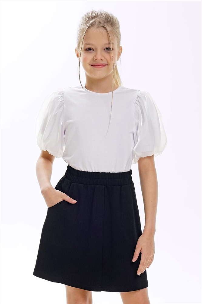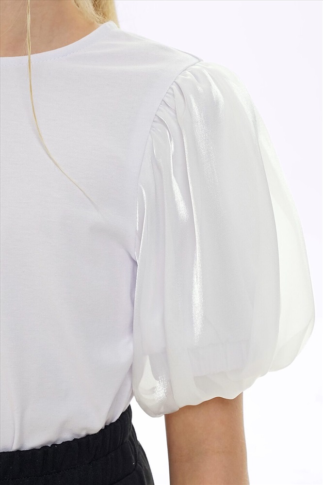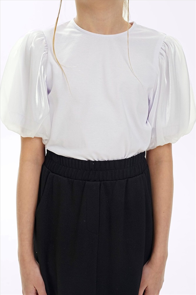 ID товара: 1037244 Состав: 92% Хлопок, 8% Эластан Сезон: Весна/Лето Длина: Средняя Фасон: Прямой Рукав: Короткий Вырез горловины: Круглый Тип карманов: Без карманов Основная ткань: Хлопок Стиль: Повседневный Страна бренда: Россия Страна производства: Россия Стильная блузка с пышным рукавом из органзы. Комментарии к товару