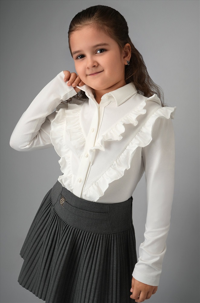 Белая блузка с оборками для девочки и девочки подростка создана для особенных моментов — в школу, на праздник или просто чтобы почувствовать себя звездочкой!