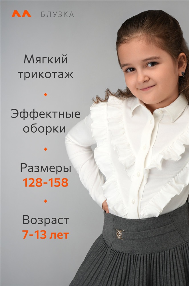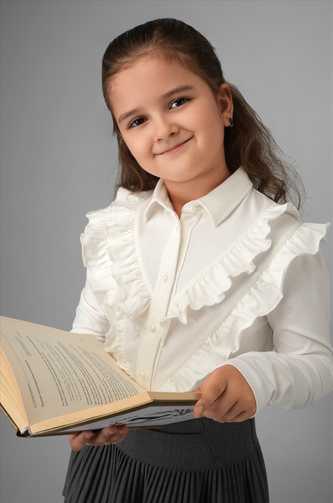 Хлопковая блуза станет отличным выбором как для школьной формы, так и для торжественных мероприятий.