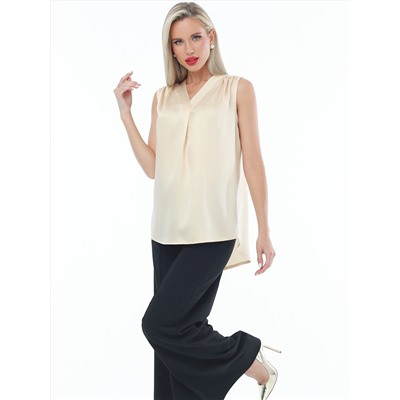 Вид застёжки: Без застежки Вырез горловины: V-образный Длина изделия по спинке: 72 Назначение: Повседневная Тип рукава: Без рукавов Уход за вещами: Бережная стирка при 30 градусах Фактура материала: Текстильный Состав: 100% вискоза Тип ткани: блузочная Цвет: Светло-бежевый Элегантная блузка – это стильный и функциональный элемент гардероба, созданный для летнего сезона. Изготовленная из вискозы, эта блузка отличается мягкостью и легкостью, что обеспечивает высокий комфорт при носке. Вырез горловины имеет V-образную форму, которая визуально удлиняет шею и подчеркивает линию декольте. Особенностью данной модели является удлиненная спинка, которая создает интересный и оригинальный силуэт. Удлиненная спинка добавляет динамики и легкости образу, а также обеспечивает дополнительный комфорт при движении. Уход за вещами предполагает бережную стирку при температуре 30 градусов. Длина: 44 размер - 72 см 46 размер - 72 см 48 размер - 73 см 50 размер - 73 см 52 размер - 74 см 54 размер - 74 см Бережная стирка при 30 градусах Цвет изделия на фотографии может отличаться от фактического товара, что связано с искажением цветопередачи монитором, настройками фотоаппаратуры и прочими факторами Пропорции
