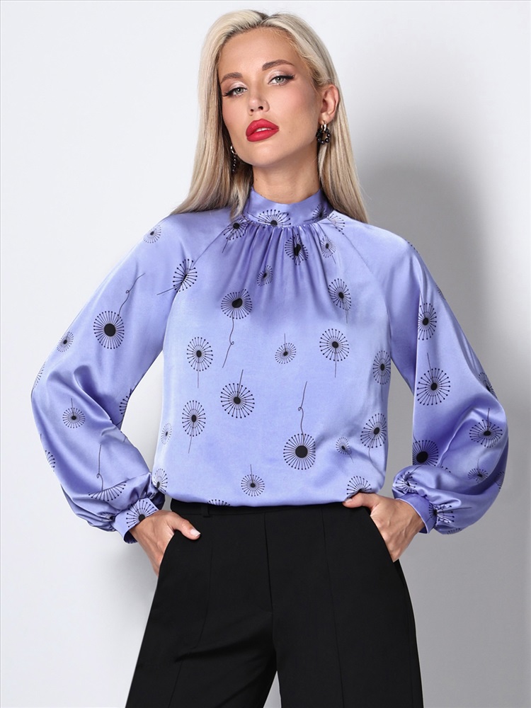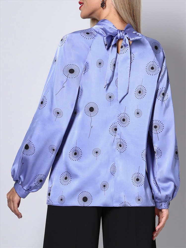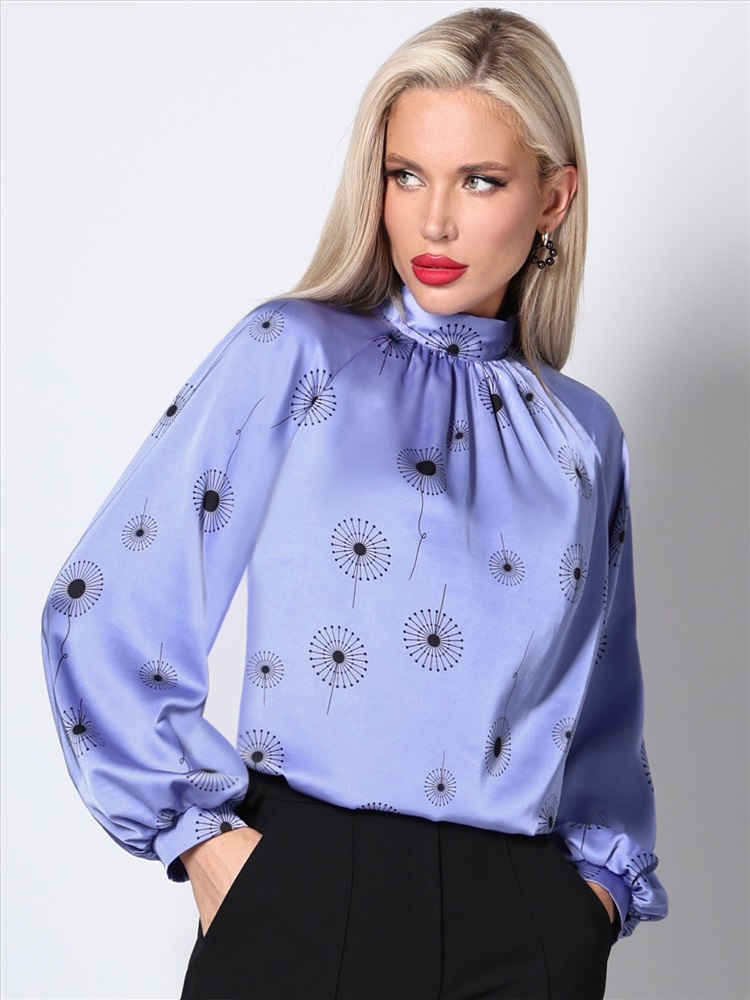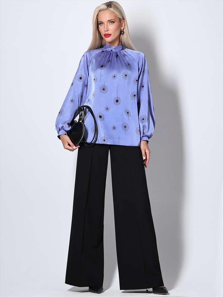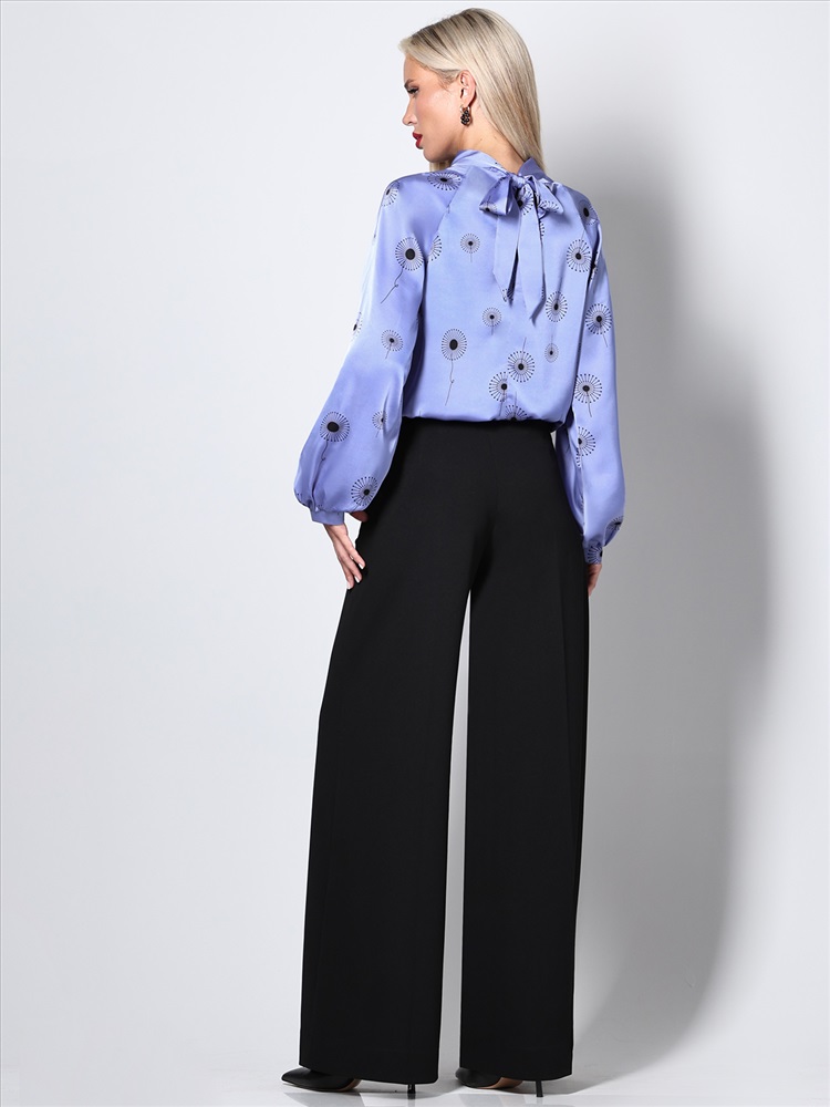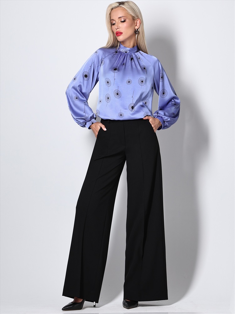 Нежная женственная блузка выглядит всегда торжественно и принесет в ваш повседневный гардероб атмосферу праздника. Воротник-стойка завязывается сзади на бант, что придает образу романтичности, как и объемные рукава. Такая блузка будет смотреться одинаково выигрышно и с юбками, и с брюками, но особенно эффектно сочетается с классической юбкой-карандаш в тон, создавая впечатление коктейльного платья.