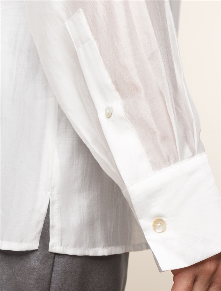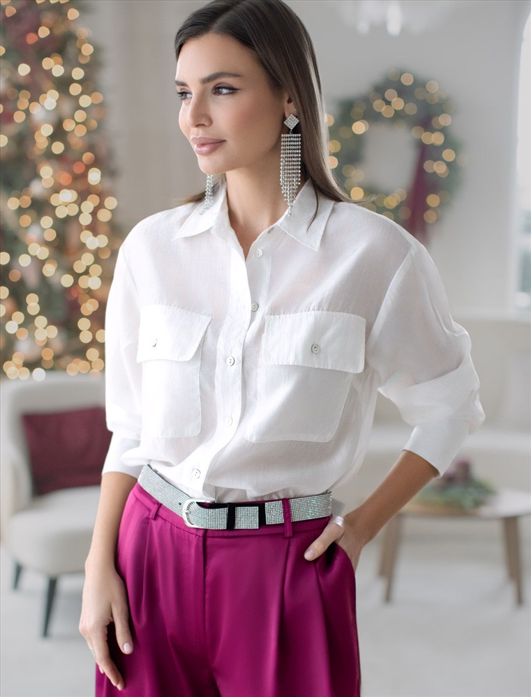 Параметры модели на первом фото: Рост 168, бюст 80, талия 60, бедра 90 Блузка выполнена из полупрозрачного лиоцелла с эффектом шелка. Легкая и почти невесомая модель, приятно ощущается на теле. Застежка на пуговицы из натурального перламутра, подчеркивает роскошь. Комментарии к товару