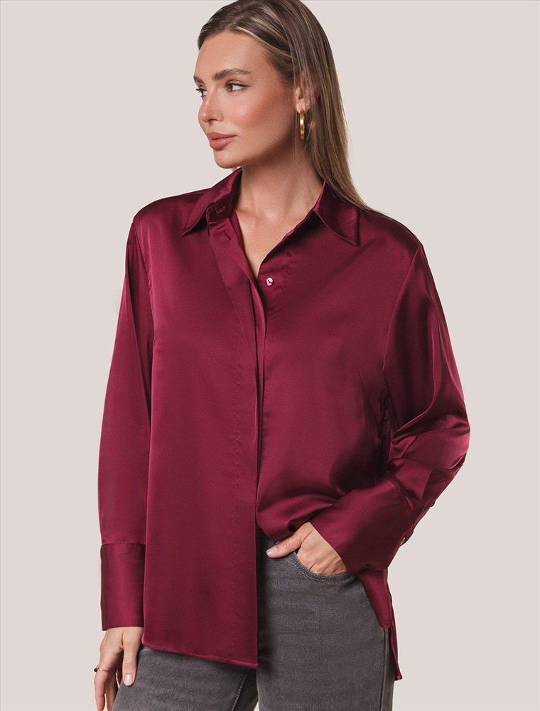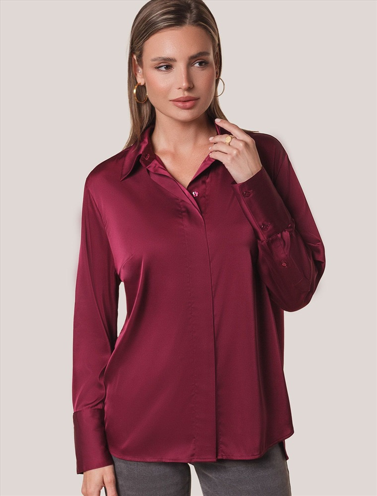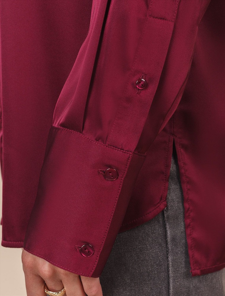 Плотность: 107 Г/м2 Параметры модели на первом фото: Рост 170, бюст 89, талия 63, бедра 92 Размер товара на первом фото: 42 Сатиновая блузка с эластаном винного цвета – воплощение элегантности и комфорта. Благородный блеск сатина добавляет образу шика, а эластичность материала гарантирует удобство при носке. Прямой силуэт блузки обеспечивает комфорт, а эластичность материала предотвращает деформацию. Застежка-планка с потайными пуговицами придает модели аккуратность. Универсальный вариант для casual-образов. Комментарии к товару