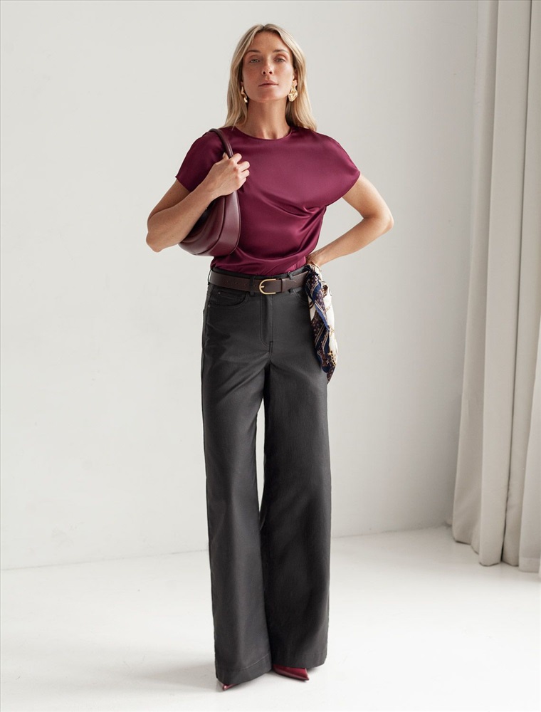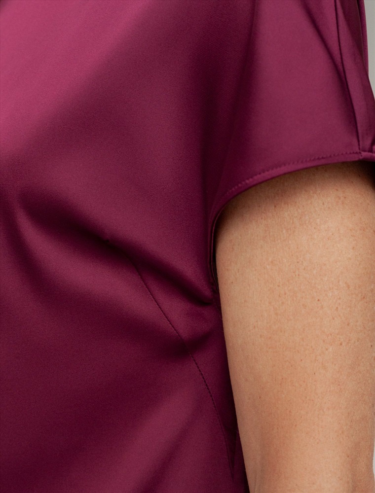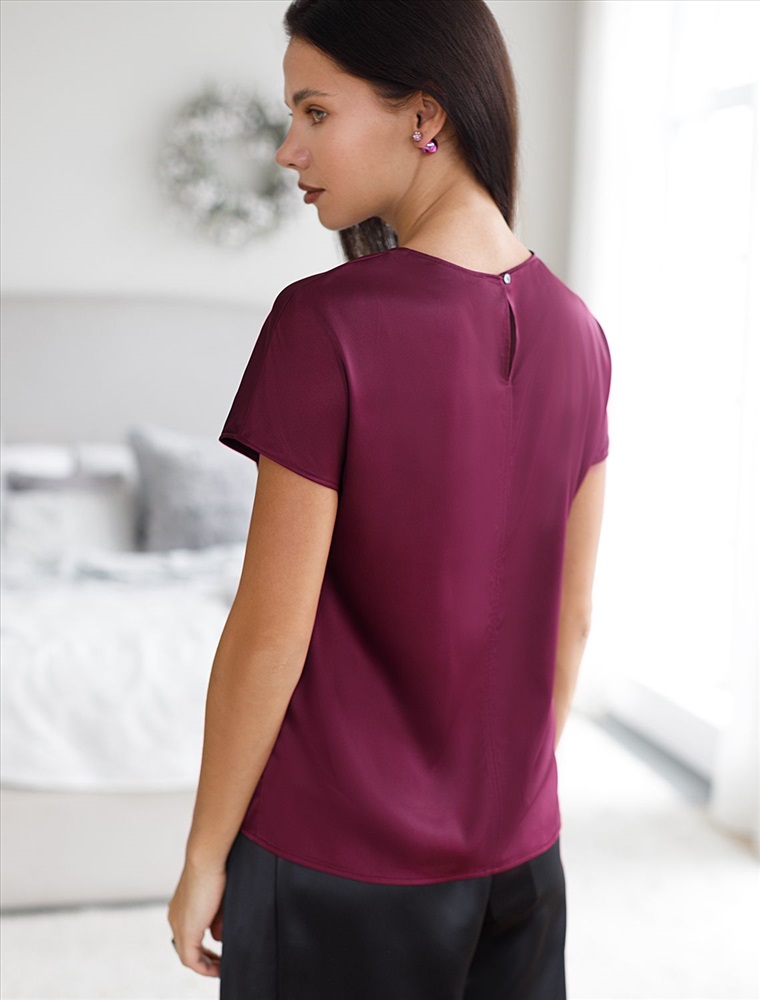 Плотность: 107 Г/м2 Параметры модели на первом фото: Рост 170, бюст 89, талия 63, бедра 92 Размер товара на первом фото: 42 Стильная блузка винного цвета из сатина с удобной застежкой на пуговицу на спинке. Прямой крой и короткий рукав делают модель универсальной для любого сезона. Благородный блеск ткани подчеркивает элегантность, а удобная посадка обеспечивает комфорт. Благодаря эластану в составе ткань сохраняет первозданный вид, не образуя заломов. Ваш образ будет безупречен весь день! Блузка легко комбинируется с деловой одеждой и casual-вещами, подходит для разных случаев. Комментарии к товару