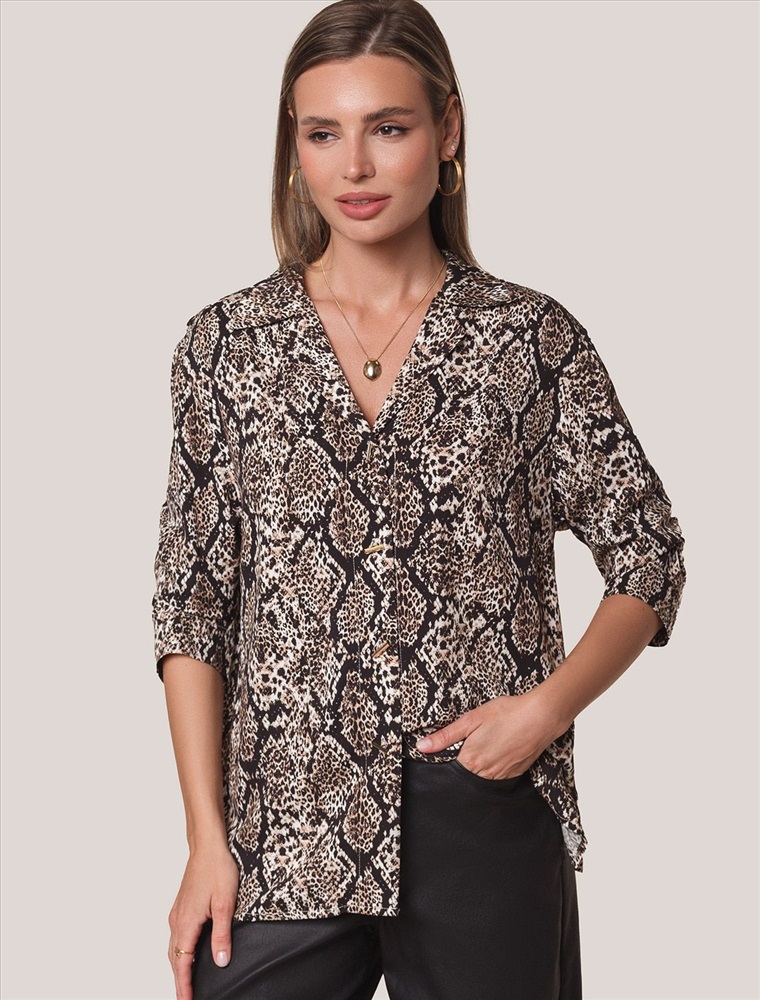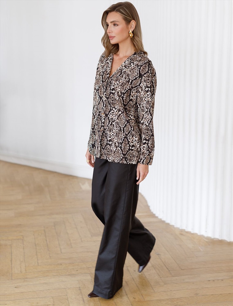 Must-have сезона - стильная и комфортная модель для создания модных образов. Мягкая вискозная ткань приятна к телу, обеспечивает отличную воздухопроницаемость и комфорт в течение всего дня. Графичный змеиный принт добавляет образу дерзкую нотку, делая его современным. Универсальный крой подходит для разных типов фигуры, легко сочетается с классическими брюками, юбками-карандаш или джинсами. Практичный материал не мнется, сохраняет форму и насыщенность цвета после стирок. Идеальный выбор для офиса, встреч с друзьями или вечерних выходов.