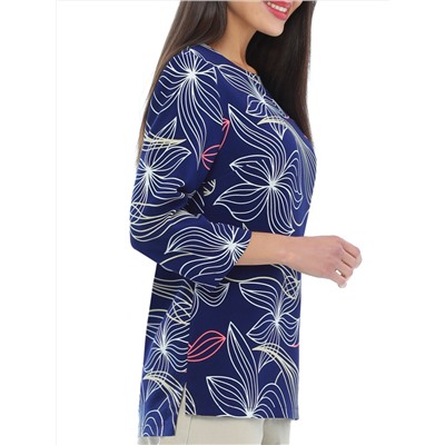 Элегантная блузка с принтом — стильная находка, которая разнообразит как деловые, так и повседневные наряды. Модель прямого фасона с рукавами длиной ¾ не сковывает движений, смотрится изящно и добавляет легкости. Модель выполнена из эластичной, приятной на ощупь ткани без блеска, которая не просвечивает и смотрится дорого. Чтобы блузка долго радовала вас красотой и качеством, рекомендуется стирать ее в деликатном режиме при температуре до 30 градусов и сушить естественным путем в расправленном виде.