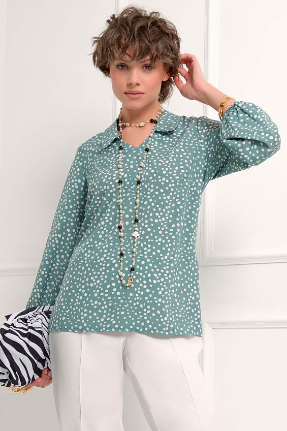 Состав: полиэстер 80%, эластан 20% Рост модели на фото: 171 см Покрой: свободный Конструктивные элементы: V-образный вырез, отложной воротничок, разрезы по бокам Линия талии: естественная линия талии Пояс: без пояса Вырез горловины/тип ворота: V-образный Длина рукава: длинные Форма рукава: классический (втачной) Вид застежки: Без застежки Сезон: весна/лето Стиль: классический Дресс код: офисный, повседневный, праздничный Назначение: повседневная Цвет: мятный Рисунок/узор/орнамент/принт: горох Комплектация (да/нет): Блуза Лейни - блузка свободного кроя из блузочной ткани с принтом. Вырез горловины V-образный, декорирован отложным воротничком. Рукава длинные, втачные, оторочены резинками. По бокам - разрезы. Блуза отлично сочетается с различными элементами гардероба. Дополнить образ и подчеркнуть линию талии Вы можете с помощью интересного пояса или ремня (на модели использован ремень Мероне, в комплект не входит). Будьте неотразимой вместе с "Белловера"! Рост модели – 171 см. Длина изделия: 46 размер – 66 см, 48 размер – 67 см, 50 размер – 68 см, 52 размер – 70 см. Комментарии к товару