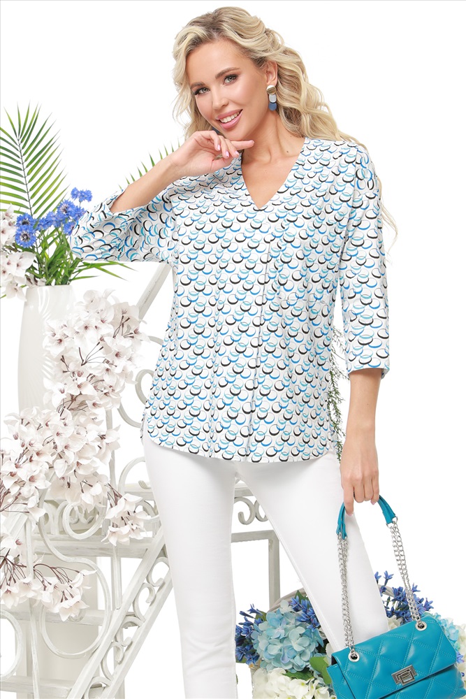 Декоративные элементы: Складки Вид застёжки: Без застежки Вырез горловины: V-образный Длина изделия по спинке: 70 Тип рукава: 3/4 Уход за вещами: Бережная стирка при 30 градусах Фактура материала: Текстильный Состав: 60% хлопок, 35% полиэстер, 5% эластан Тип ткани: Плательно-блузочная Цвет: Белый Блузка свободного кроя выполнена с застроченной складкой на груди. Она абсолютно не сковывает движений и подойдет для женщин любой комплекции. Складка создает вертикаль, стройнит и зрительно вытягивает образ. Идеальную пару свободной блузке составят облегающие джинсы или брюки. Длина: 44 размер - 70 см 46 размер - 70 см 48 размер - 71 см 50 размер - 71 см 52 размер - 72 см 54 размер - 72 см 56 размер - 73 см Бережная стирка при 30 градусах Цвет изделия на фотографии может отличаться от фактического товара, что связано с искажением цветопередачи монитором, настройками фотоаппаратуры и прочими факторами Пропорции